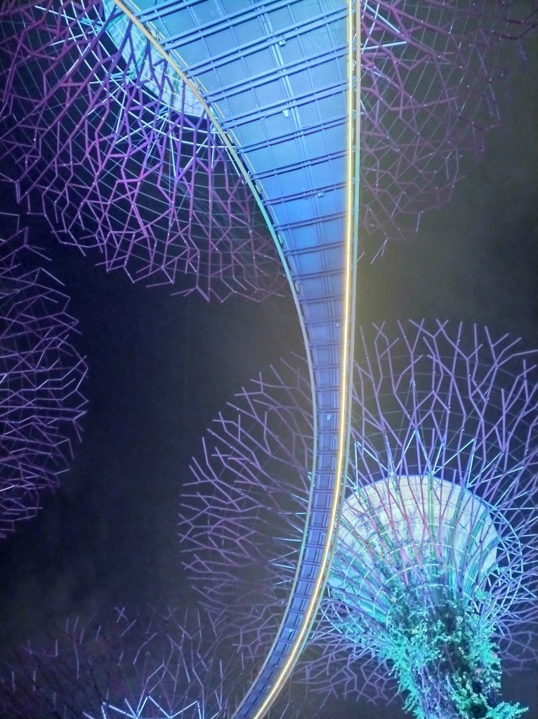 Eventually the OCBC Skywalk Sith disappeared and the light show started. Laying up on my back watching the trees light up on yet another evening of perfect Singapore weather, I felt very lucky indeed. D was thinking similar thoughts, although his came with an added layer of guilt because he was thinking of his father, who always vowed to travel when he retired, but passed away a few weeks short of retirement. In a way, I owe my FIL a thank you for this trip because his death reminded D that our adventuring time is finite. Suddenly, vetoes of certain destinations began converting into “why nots,” and we have been able to have wonderful experiences in a number of countries. Our magical evening at Gardens by the Bay is definitely near the top of that list of experiences.