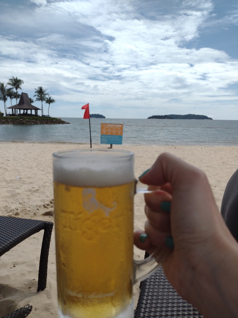 We did very little for the rest of the afternoon. P watched some soccer on TV while I repacked our suitcases and did some bird watching from our balcony. Eventually, we convinced P to leave the room to play some pool and air hockey in the game room. After that, we made a quick visit to the hotel’s clown fish discovery center, a sad room of barren tanks full of fish. Then, P headed back to the room for more TV while D and I took a walk along the beach. As we were watching the ocean, we were approached by a local who was excited to see foreign tourists back in KK. He told us a bit about his time studying in the US in the 70s, chatted with us about the US NBA basketball playoffs, and shared his insights into Malaysia’s government. (His opinions were of the sort that you would expect from that one uncle – you know the one — at Thanksgiving here in the US). He was very interested to hear where we were headed after KK but seemed almost disappointed when we told him we were heading to Sandakan the following morning. “Haven’t you seen orangutans in zoos?” he asked. Then, after a thoughtful pause, he said, “The problem with the wildlife here is that no one has trained it.” When we didn’t respond, he continued. “Have you been to Thailand? They teach the monkeys to dance there. That’s what we need here, but we don’t have the skill to train them.” “It’s not so much skill,” I replied. “They just give the animals a good beating.” Our new friend didn’t know how to respond. I was tempted to say more about how seeing animals in the wild was the main attraction for us, but I didn’t want to be too rude, and I really wasn’t sure if the dancing monkeys remark had been a joke. We transitioned back to the safer topic of basketball. Eventually, we made our excuses and headed back to the room to find P.