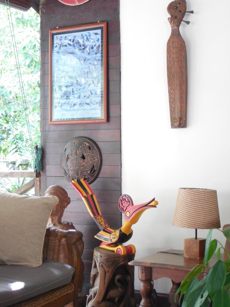 After breakfast, we took a guided walk along the lodge’s boardwalks. In quick succession, we saw a pygmy squirrel and a Sunda giant squirrel. The contrast in size between the two squirrels was pretty amazing. And the pygmy squirrel had tufts of fur that stuck out to the sides of his head, making him look like a tiny, furry Einstein. Sadly, both squirrels skittered off quickly, so I wasn’t able to get any photos. We did not have any other memorable animal sightings on the walk, but we did enjoy learning about the plant and insect life at the lodge.
