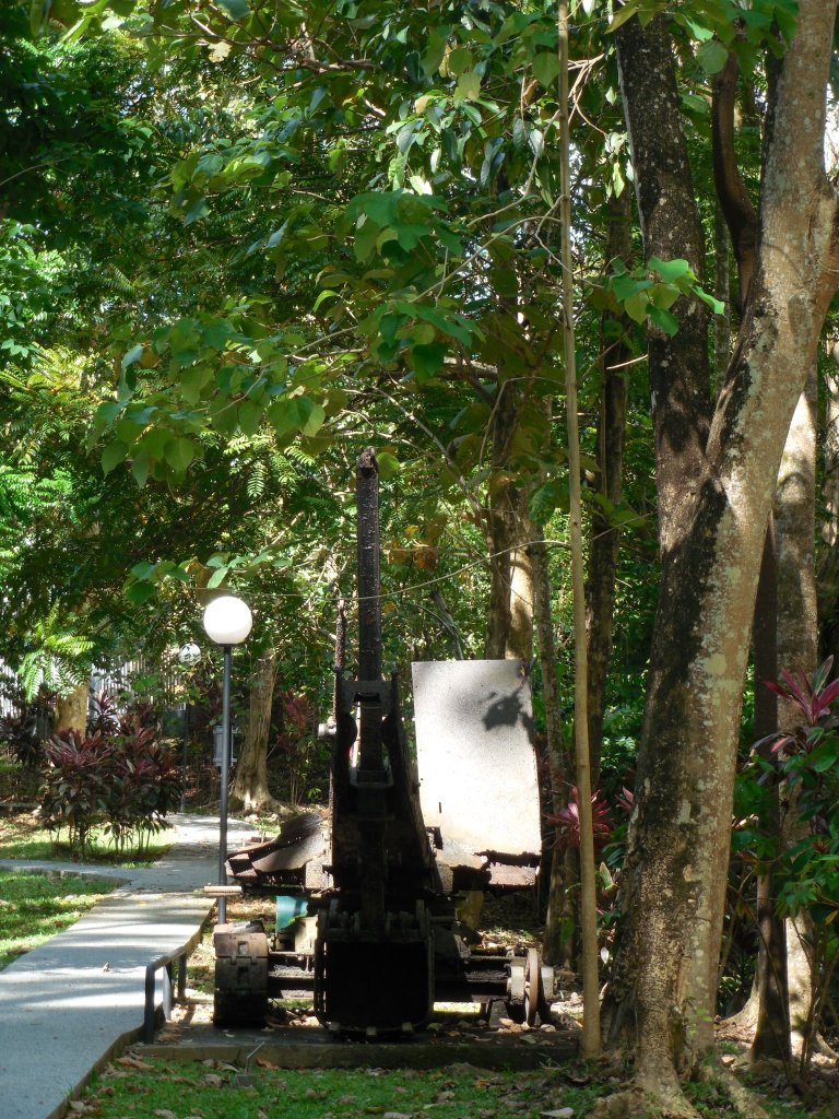 After our walk, we visited the small museum at the Centre, which had interesting exhibits on local animals and plants, including a station where you could smell spices that came from the jungle. Then we loaded back into the bus and headed to Sandakan Memorial Park. Sandakan Memorial Park sits on the sight of the former Sandakan camp, a Japanese POW camp during World War II. Most of the Allied prisoners at the camp died, many in Sandakan death marches, a series of forced marches designed to prevent the liberation of prisoners as Allied forces advanced on Borneo. Because a handful of prisoners who escaped camp survived long enough to be rescued, the museum in the park contains first-hand accounts of what the prisoners endured. They are difficult to read. The park outside the museum is peaceful and beautifully landscaped, which allowed for some reflection after learning about the camp and the death marches. I was glad we had the opportunity to visit, although I think that passing on the experience when P was younger was probably the right call. At 9, he was disturbed by what he read, but had enough maturity to process it.