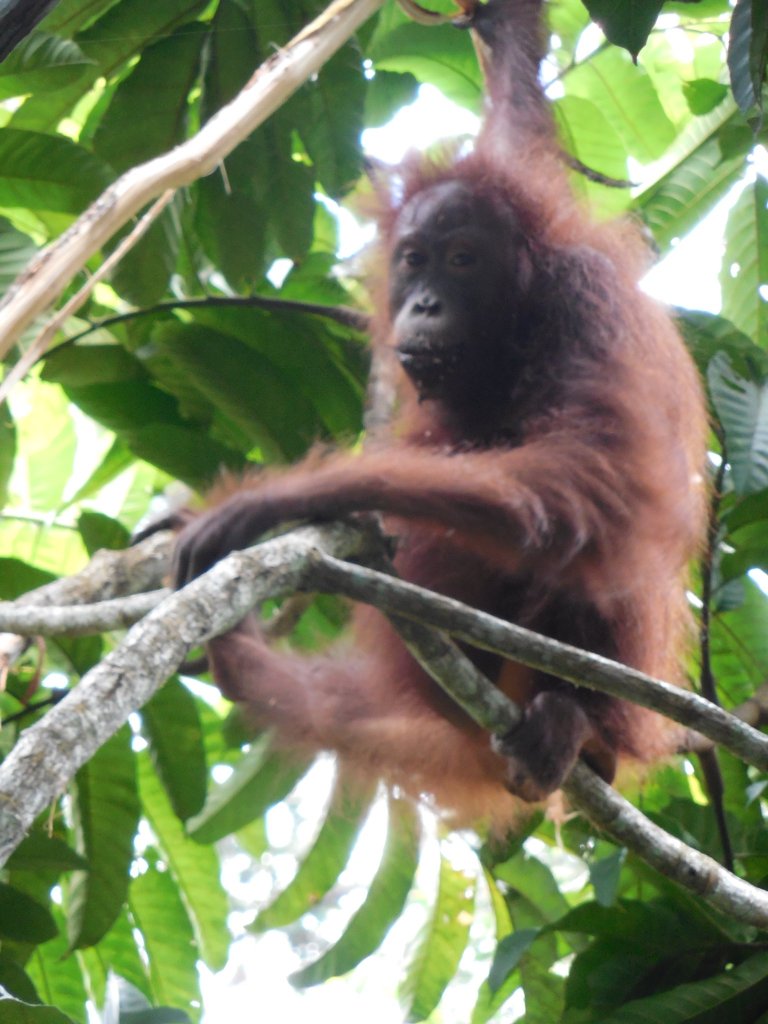 We weren’t far along the walk when we noticed an unpleasant smell that our guide quickly identified as orangutan urine. Sure enough, there was an orangutan in the treetops next to the walkway; we were at eye level! Because the orang did not have any sort of tracking collar or tags, the guide was confident that it was a wild born animal. We spent some time watching and photographing the orang while our guide chatted with some local families who were out enjoying the park. His enthusiasm for sharing his love of his country’s wildlife was inspiring. Despite all of the deforestation that we saw on our trip, it does seem like there are reasons to be hopeful.