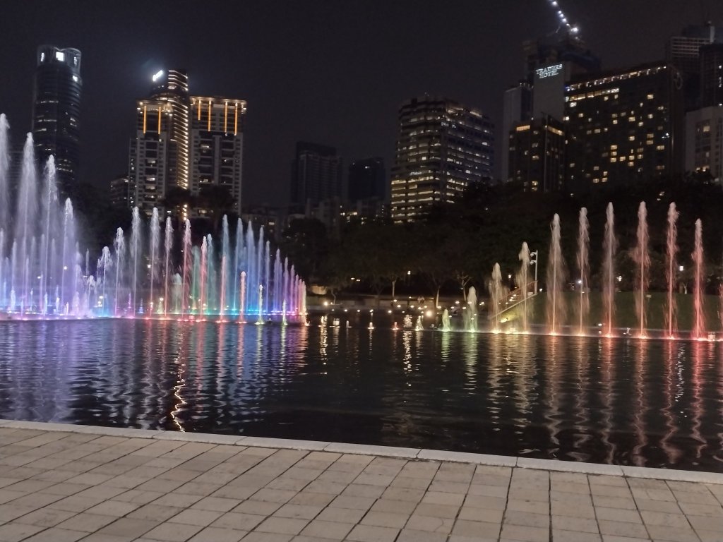 After dinner, we went outside to watch the fountain show in the park. This free show combines lights, music and choreographed jumping fountains; from the right vantage point, you can watch the show with the lit-up Petronas Towers in the background. Enjoying the show in the perfect evening weather was another one of those moments that reminded us of how lucky we were to take this trip.