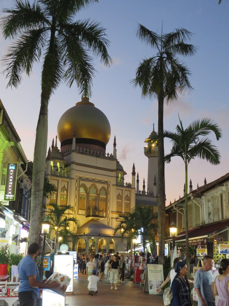 Kampong Glam is a lovely neighborhood of historic shophouses that would be fun to explore at any time. On a Friday night, it was buzzing with people out enjoying the evening and restaurant-workers touting their establishments. Though the many no-touting signs in the neighborhood suggest to me that touting may be illegal, I quite enjoyed our interactions. It felt more like a warm, friendly welcome than hard-selling tactics. While we weren’t in the market for a second dinner, we did have some teh tarik and Turkish ice cream as we wandered. “I think it was worth coming here even though dinner wasn’t great,” I said hopefully.