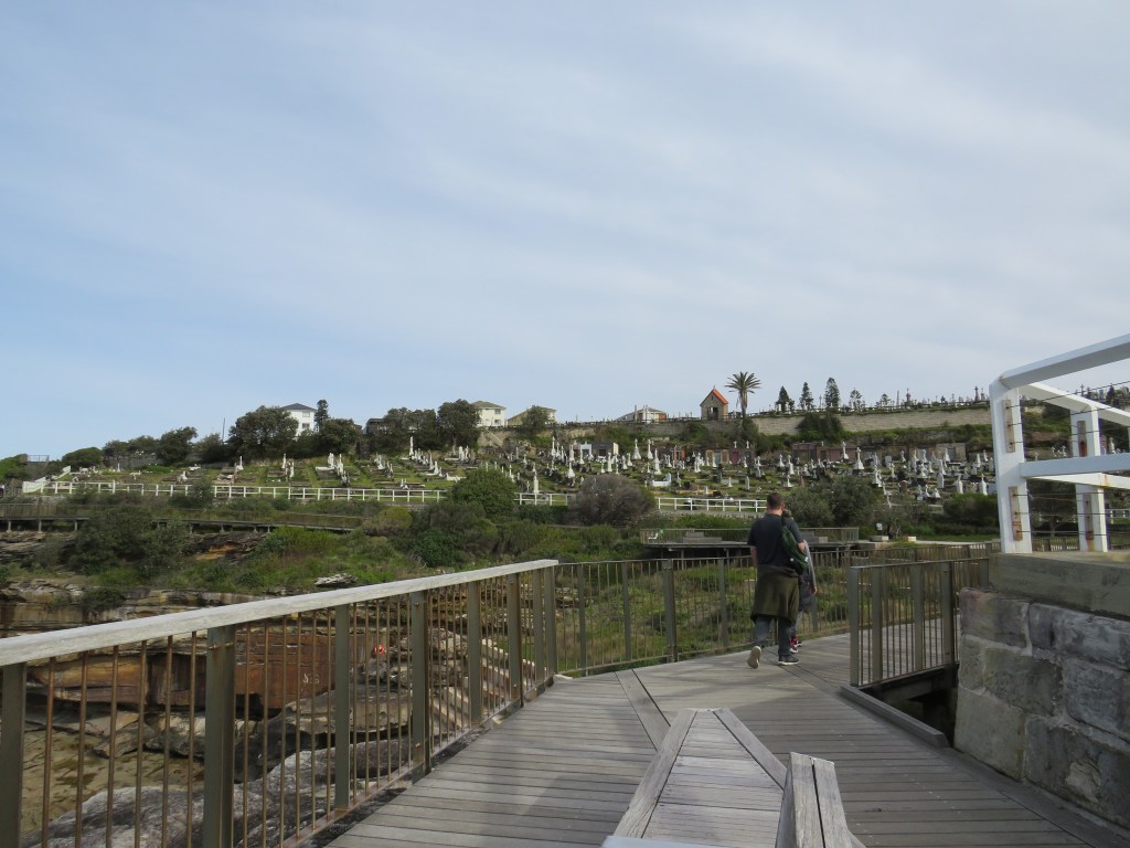 The first half of the walk from Bondi to Bronte beach passed quickly with everyone in good spirits and keeping an eye out for whales and seabirds. But the second half of the walk seemed to drag as P became less patient with the excursion. By the time we reached Waverly Cemetery, a Victorian era cemetery set on some prime oceanfront real estate, P had flipped from enjoying the walk to enduring it. I was faced with a choice between keeping the peace and finishing an activity that I had been looking forward to. I opted for the latter.
