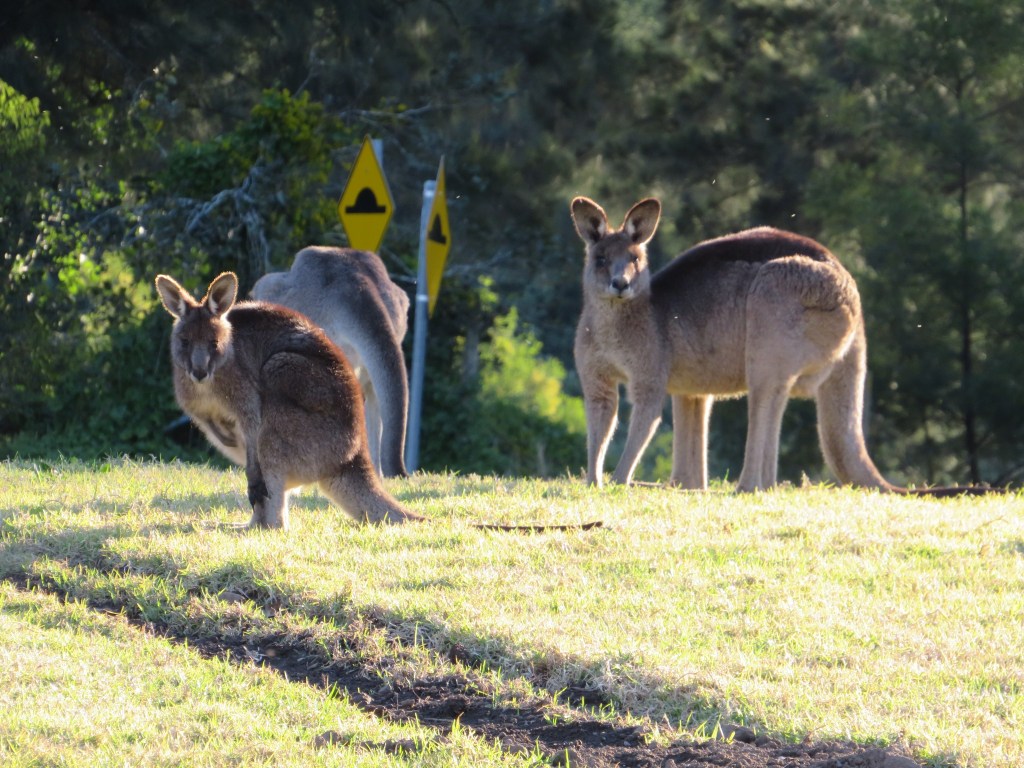After photographing the bats, it was at long-last time to make the short drive to Bendeela Recreation area for wombat and kangaroo viewing. Bendeela, a camping and picnic area, is also home to mobs of kangaroos and wisdoms of wombats – mobs and wisdoms being the respective names for groups of these marsupials. We saw our first kangaroos as soon as we turned into Bendeela. While Dave promised there would be many more kangaroos to come, we did stop to take pictures of this first mob of female and juvenile roos.