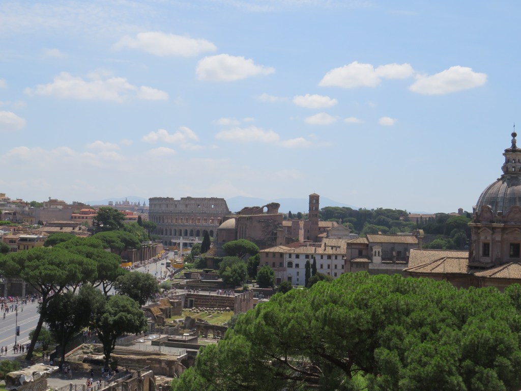 We enjoyed our slushies and a mediocre pizza in the monument’s terrace café. The views are ridiculous. Everywhere you look is some important monument: the Colosseum, the Arch of Constantine, the forum. So many interesting things are crammed together that it is surreal. I had to remind myself several times that I was looking out over the actual city of Rome and not some theme park recreation of it.