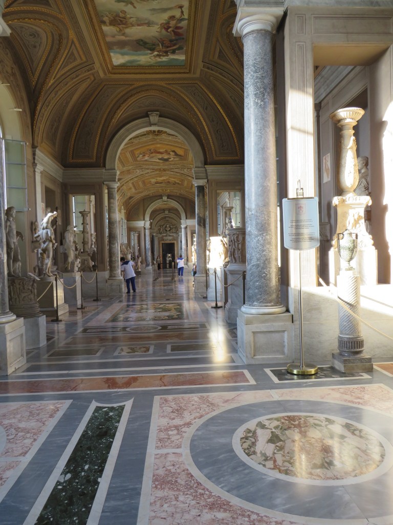 The entrance to the Vatican Museums is via a spiral ramp that takes you up several stories. There are also elevators for those with mobility issues (and Christina, who – despite her high energy – doesn’t care for walking up hills). At the top of the ramp, we entered the museum. As we toured, the keeper of the keys walked in front of us, opening the rooms to the museum. Now, I knew from my pre-trip research that the Vatican Museums are typically very crowded, so I had some appreciation for how special it was to see the rooms completely empty. For that reason, I took just as many pictures of the empty rooms as I did of the art.