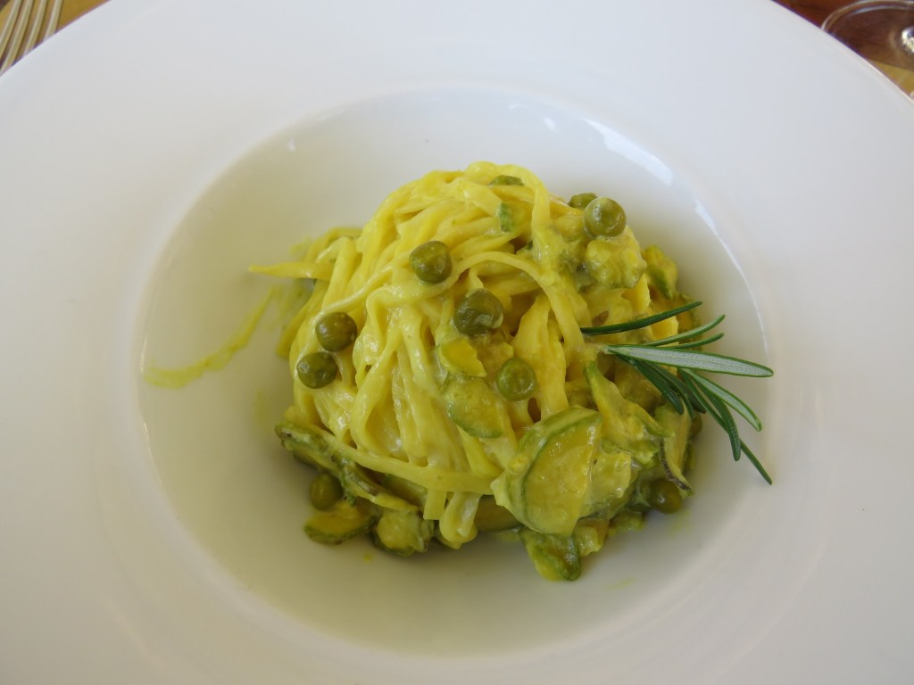 The restaurant choices for the evening differed somewhat from the ones listed on the tour company website and I did not keep good notes. (Given the amount of wine we were served on this tour, taking any kind of notes at all would have been a challenge). However, I do know that we started at the wine bar Essenza where we sampled some cheeses and bruschetta. Vegetarians received pumpkin and ricotta spreads in place of the hams usually offered. We then moved on to our second happy hour where we enjoyed fried zucchini blossom; fried sage, a surprise hit that tasted like a savory donut; and eggplant. Then we visited Peppo al Cosimato for our main course, our choice of pasta and a selection of pizzas. The pasta and pizza here were some of the best of the trip. Finally, we wrapped up with our second gelato of the day.