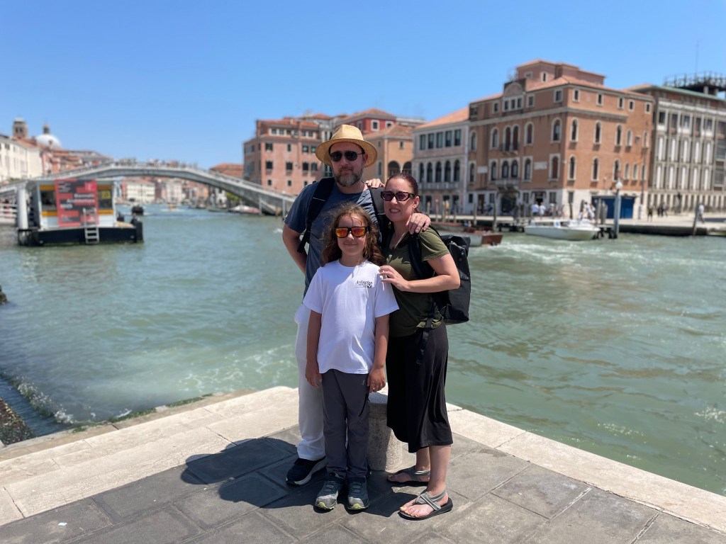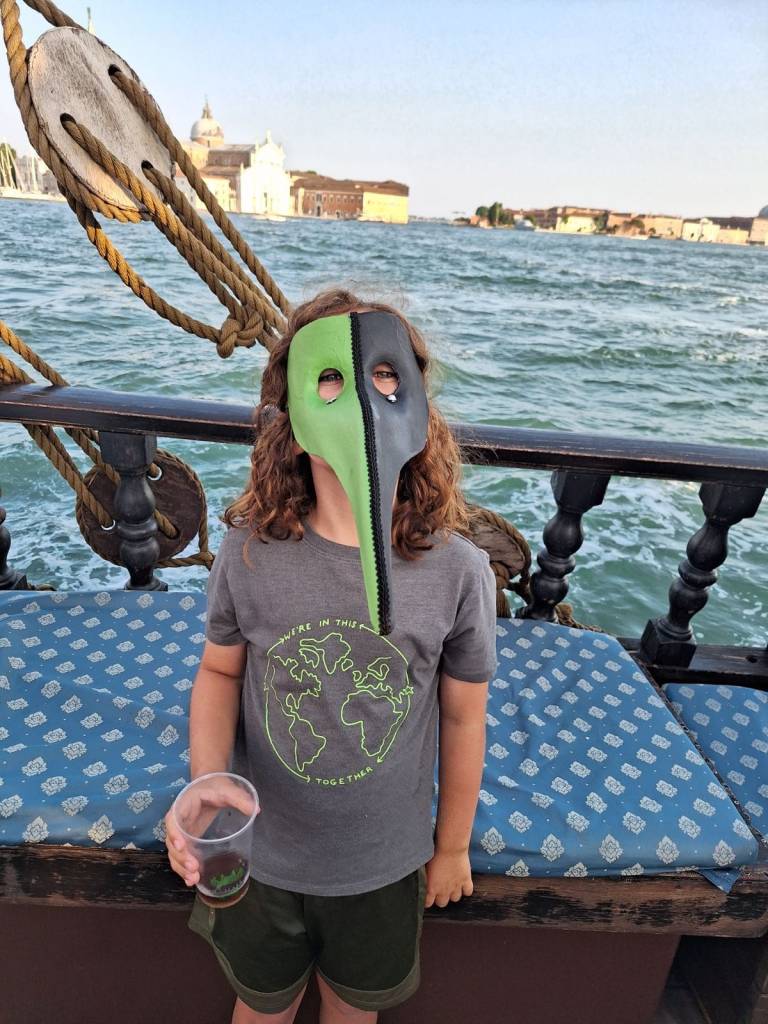 Our delight was short-lived. After giving us his best shimmy, P doubled over in pain. He had somehow scraped himself against something sharp and his stomach was now bleeding. If you are keeping track, this completed our family’s punch card. We are now entitled to one free injury on our next ABD! I found the guides, obtained a Band-Aid, and dressed P’s wound. Once P had been assured that Italian pirate ships don’t cause tetanus, we all went back to enjoying the cruise (with a moratorium on dance offs). In a day that had had many lows, we were so glad that we were able to end our time in Venice on a high note.