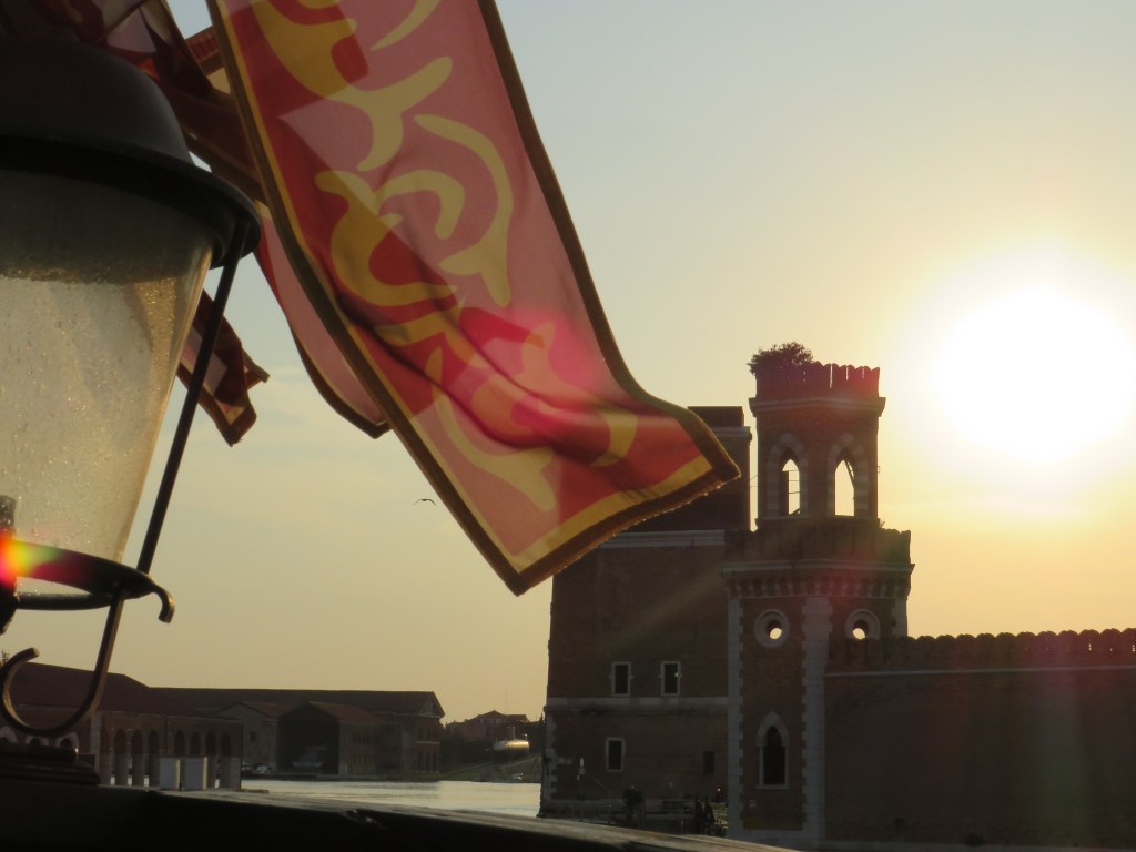 The sun sparkled on the water, boats whizzed by, and from below me drifted the sweet sounds of … a group of American tourists waiting for the hotel shuttle boat to take them across the canal. Apparently, our room was right above the shuttle boat queue. I quickly shut the window and the blinds so that we could dress without an audience.
