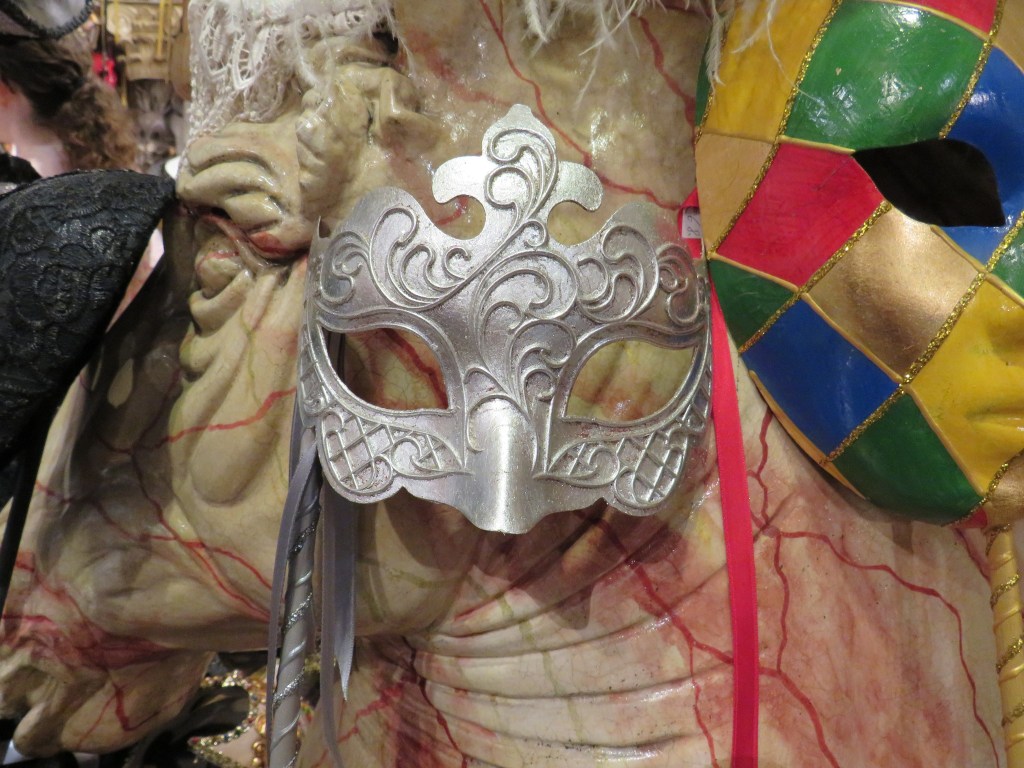 Once everyone in our group had the opportunity for a break, we set out on foot for our next activity: mask making at Tragicomica. The walk took us on what seemed like a meandering route through Venice’s streets and allies. (Every walk in Venice feels like wandering through a maze). The longer we walked, the worse I felt. By the time we arrived at the mask shop, about 25 minutes after we had set out, I was feeling weak, nauseous, and unsteady. I would love to tell you that – had I known how long the walk was – I would have skipped mask making. But the truth is that I probably would have stubbornly powered through either way. I had been looking forward to my arts and crafts time.