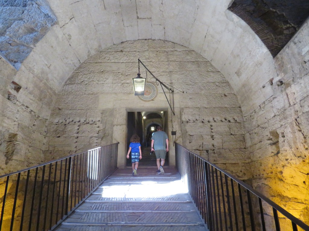Shortly before boarding, the gate crew checked everyone’s passports. Then we boarded our flight and found our seats. “This is not a very nice plane,” P remarked. He was not wrong. If Delta was trying to design an economy class that was uncomfortable for everyone, they succeeded. No leg room for tall people. Narrow seats to confine larger people. Headrests that hit short people right in the back of the head. And no seat padding so that everyone gets a good jab in the back throughout the flight. On the plus side, Delta’s customer service was as friendly as ever, our meals were tasty, the wine was free, and the entertainment system was loaded with enough content to get us to Rome and back several times over. D and I toasted to our trip and then I relaxed by watching Silence of the Lambs while my ten-year-old sat next to me. I am pretty sure he kept his eyes on his own screen. Maybe.